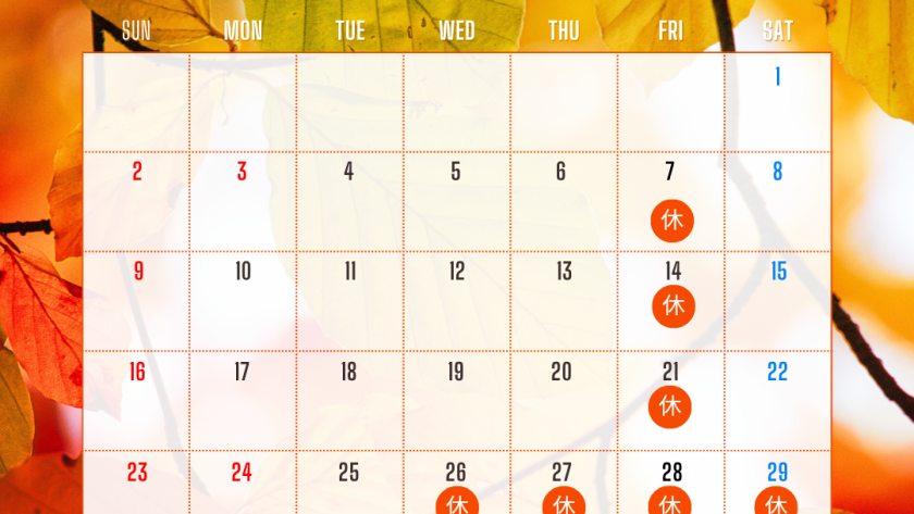11月、26日水曜27日木曜28日金曜29日土曜と、定休日を頂いております<m(__)m>